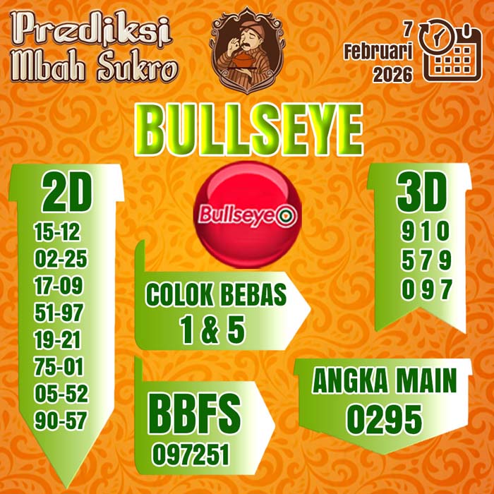 PREDIKSI MBAH SUKRO BULLSEYE SABTU 7 FEBRUARI 2026