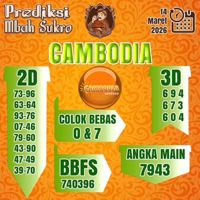 PREDIKSI MBAH SUKRO CAMBODIA SABTU 14 MARET 2026