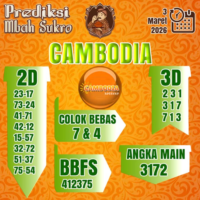PREDIKSI MBAH SUKRO CAMBODIA SELASA 3 MARET 2026