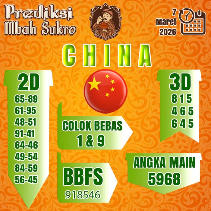 PREDIKSI MBAH SUKRO CHINA SABTU 7 MARET 2026