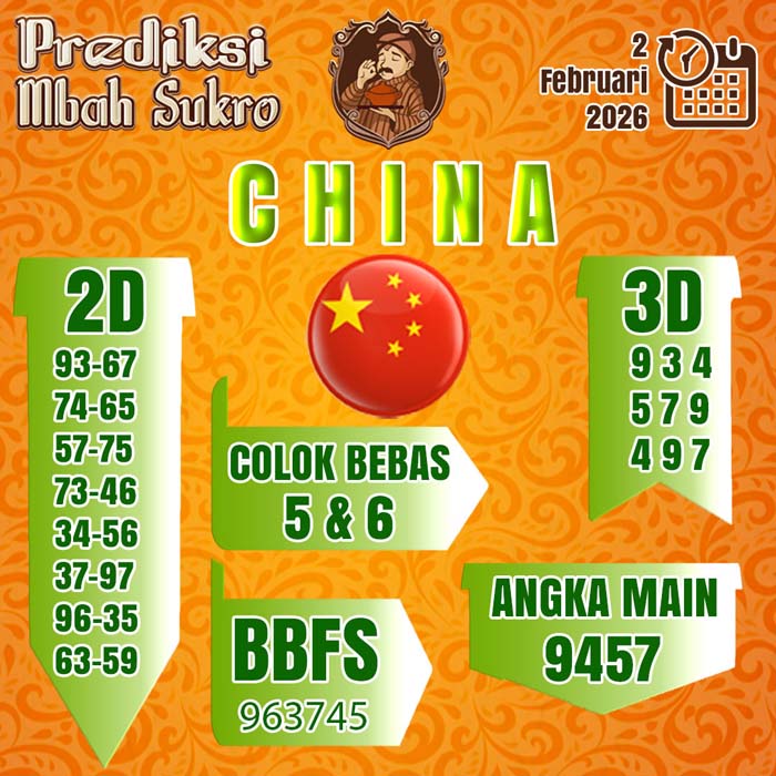PREDIKSI MBAH SUKRO CHINA SENIN 2 FEBRUARI 2026