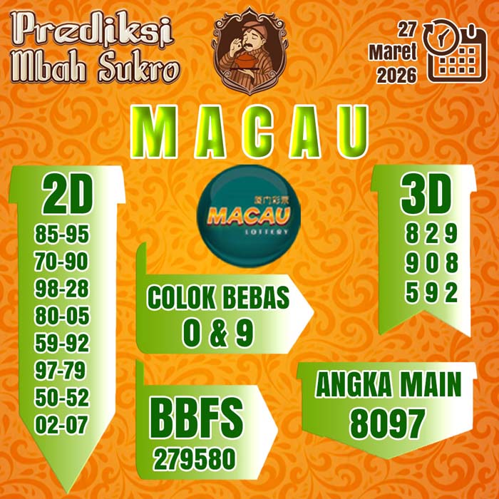 PREDIKSI MBAH SUKRO MACAU JUMAT 27 MARET 2026