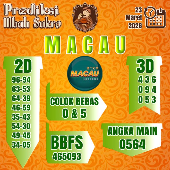 PREDIKSI MBAH SUKRO MACAU SENIN 23 MARET 2026