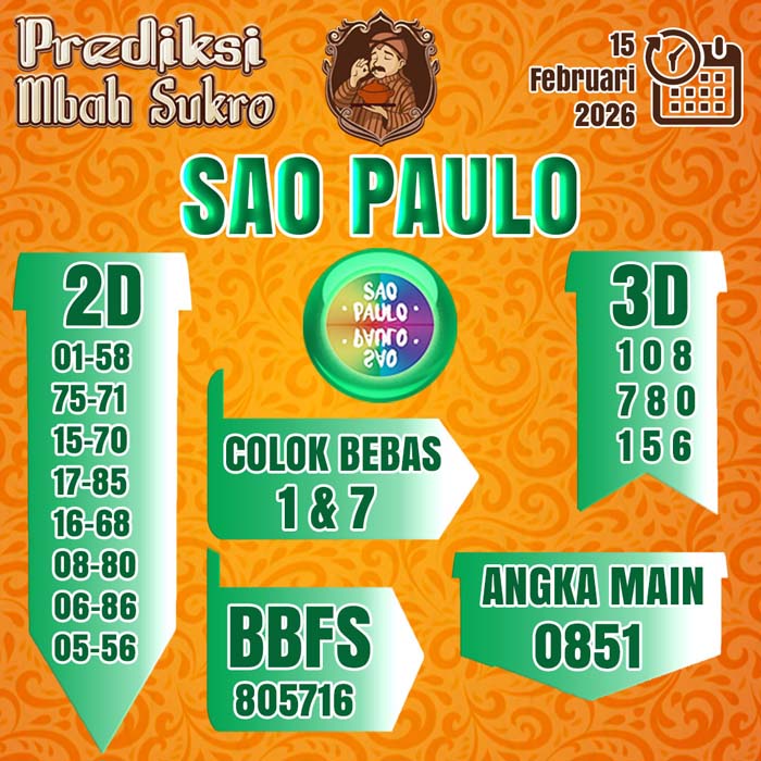 PREDIKSI MBAH SUKRO SAO PAULO MINGGU 15 FEBRUARI 2026