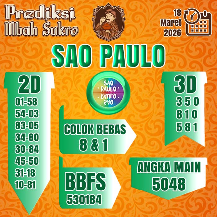 PREDIKSI MBAH SUKRO SAO PAULO RABU 18 MARET 2026