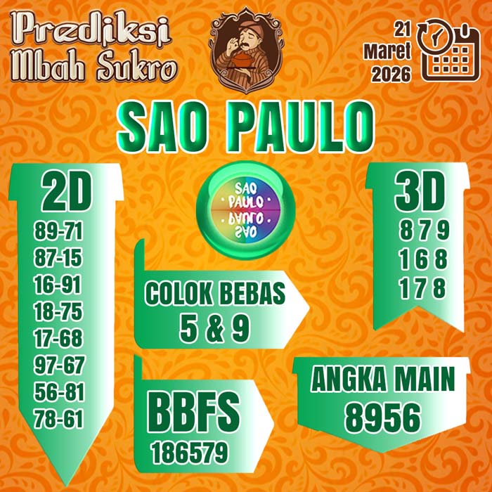 PREDIKSI MBAH SUKRO Sao Paulo HARI INI – Selamat datang sobat setia penggemar pasaran Sao Paulo TOGEL. Semoga semuanya dalam keadaan sehat selalu.