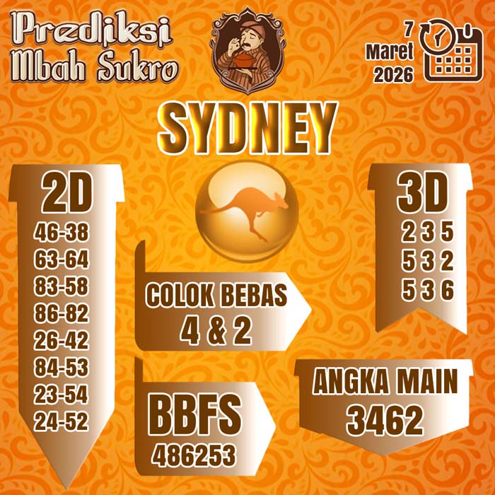 PREDIKSI MBAH SUKRO SYDNEY SABTU 7 MARET 2026