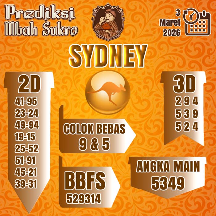 PREDIKSI MBAH SUKRO SYDNEY SELASA 3 MARET 2026