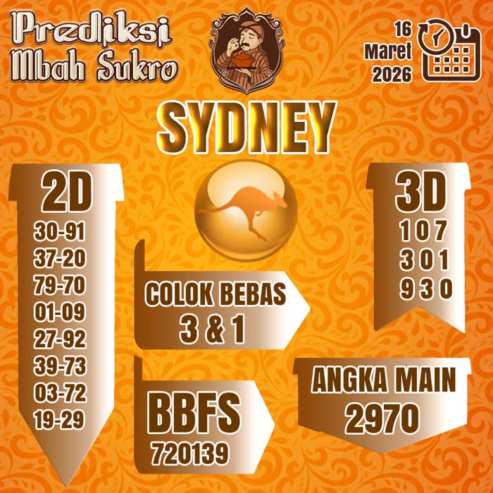 PREDIKSI MBAH SUKRO SYDNEY SENIN 16 MARET 2026