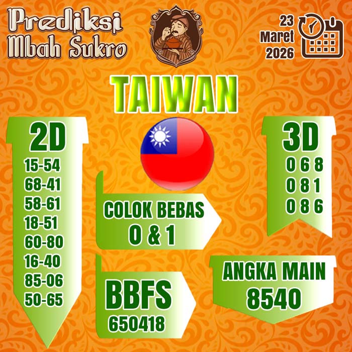 PREDIKSI MBAH SUKRO TAIWAN SENIN 23 MARET 2026